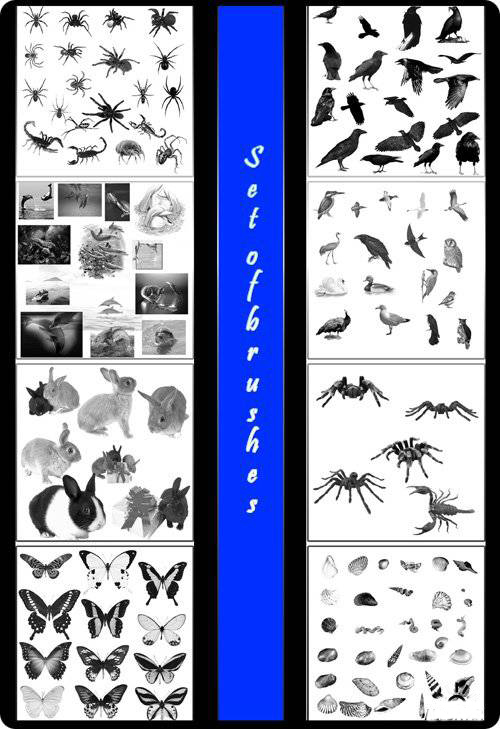 HD dolphins, shells, rabbits, birds, insects PS brush set